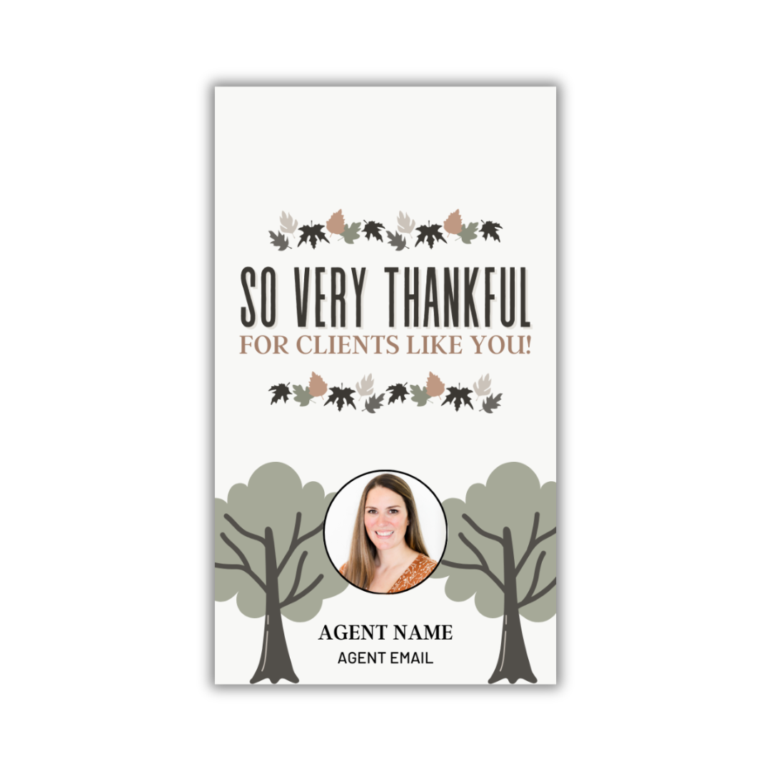 Bring a touch of autumn warmth to your client connections with our Fall Pop-By Cards. Designed with cozy seasonal themes, each card is customized with your branding so you stay top-of-mind while spreading a little fall cheer. Perfect for pairing with small seasonal gifts or as a simple standalone gesture, these cards make it easy to show clients you care.