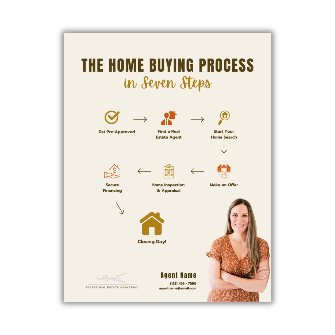 Simplify the home-buying journey for your clients! This custom-branded flyer breaks down the process into easy steps, making it the perfect tool for consultations and open houses.